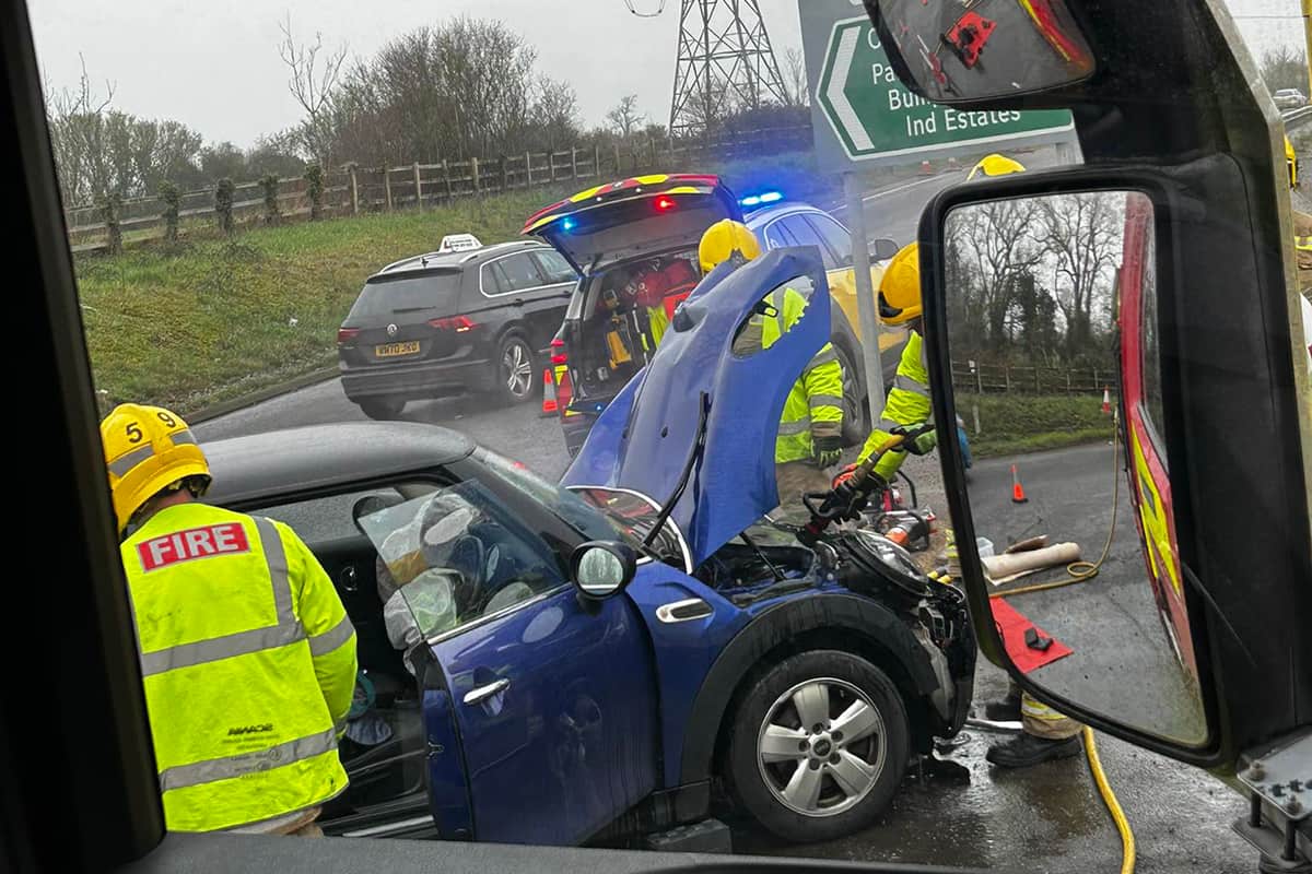Emergency services responded to a single-vehicle road traffic collision on the A350 near Bumpers Farm, Chippenham, on the morning of Sunday, 8 March. The incident involved a blue Mini Cooper and required a coordinated multi-agency response.